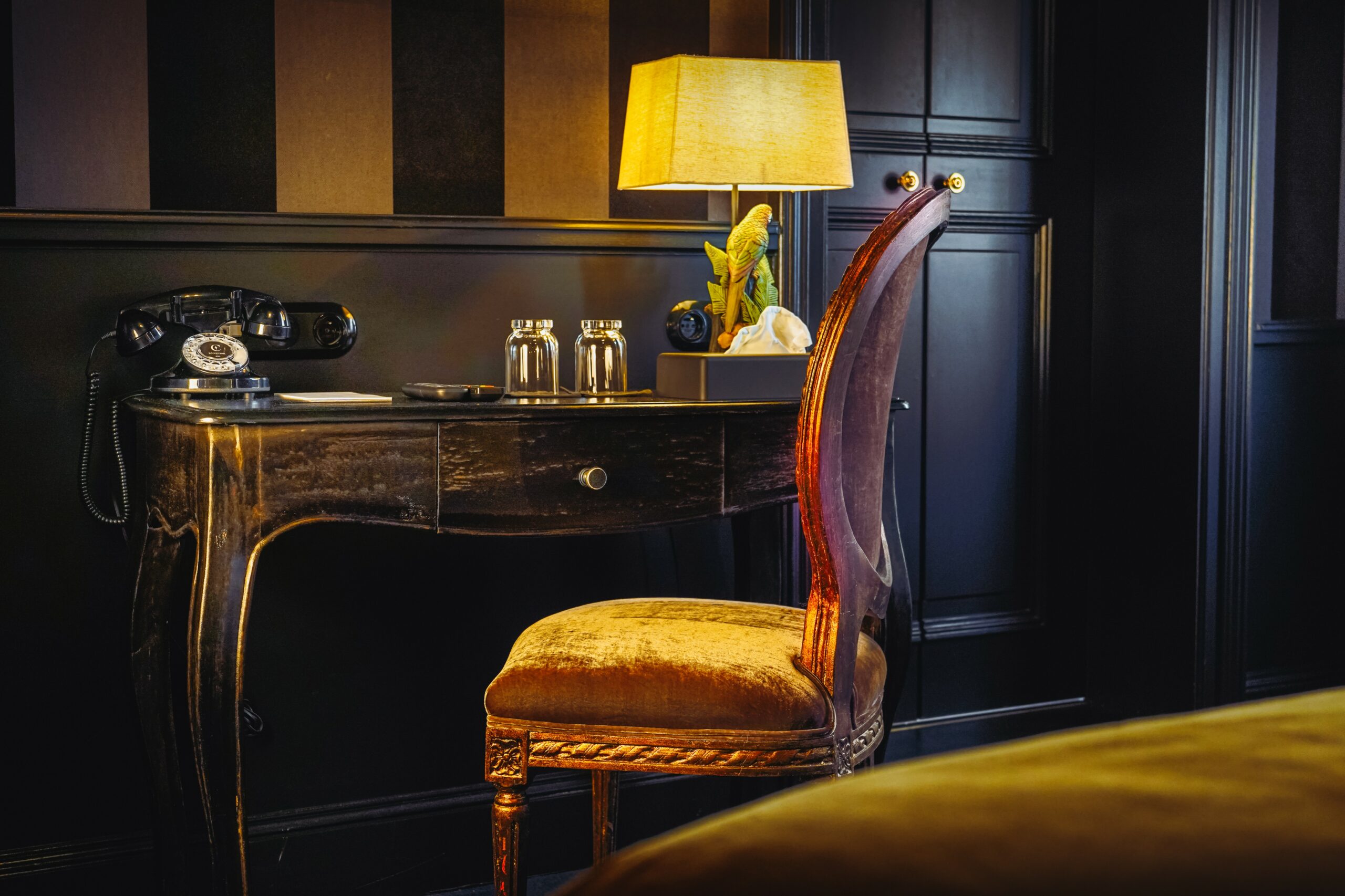 Derrière toutes les portes feutrées de Madame C, douze chambres d’exception vous attendent, chacune pensée comme un écrin intime où luxe et mystère se rencontrent.
